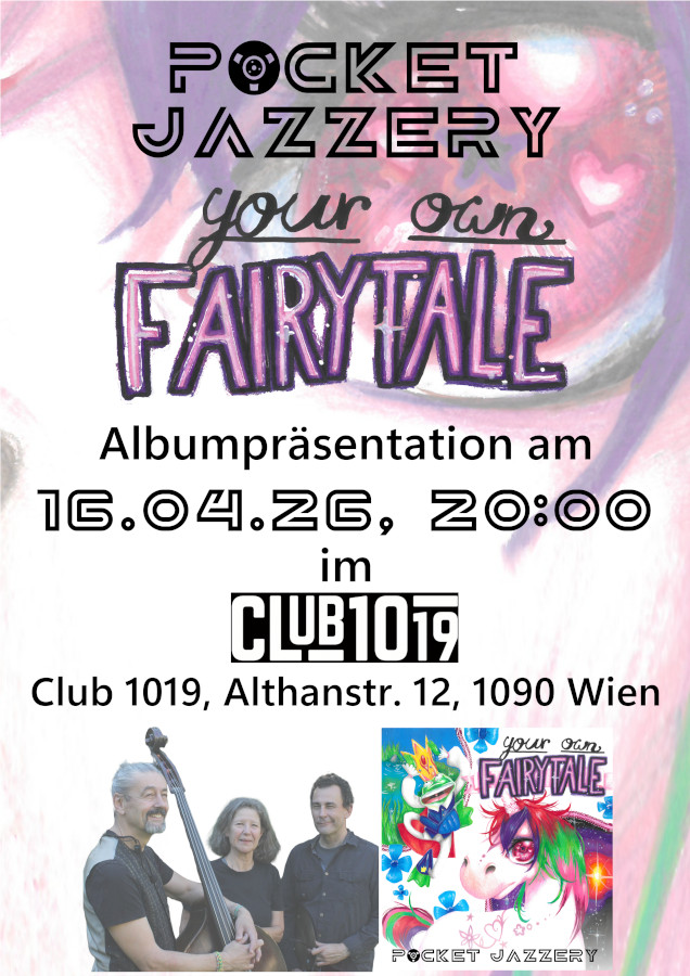 In klassischer Trio-Besetzung widmet sich POCKET JAZZERY überwiegend eigenen Kompositionen, ergänzt durch ausgewählte Jazzstandards mit persönlicher Note. Musikalisch bewegt sich das Trio zwischen klassischem Swing, Latin-Grooves und souligem Blues – stets getragen von Spielfreude, klarem Ensembleklang und vokalen Akzenten. Am Donnerstag, 16. April 2026, präsentiert das Jazztrio sein neues Album "Your Own Fairy Tale" erstmals live.